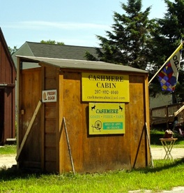 Jodie and her granddaughter, Jennifer, enjoy spinning and knitting and making various handcrafted items including cashmere socks and gloves. For many years Jodie and Sonny would travel with the small portable booth they named the “Cashmere Cabin” to sell their handmade goods at various fairs such as Skowhegan, Cumberland, Windsor, Topsham, and Fryeburg.
