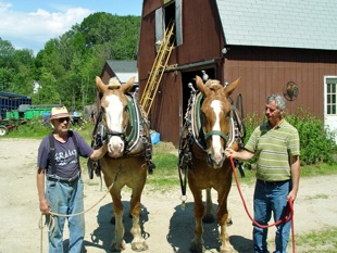 Jodie chuckled when recounting how the family loves to joke Sonny about reverting back to horses because he “had aged so that couldn’t walk and needed the horses for the ride that they provided!” When questioned about Sonny’s reaction to the playful teasing, Jodie responded, “He can take it, and he can certainly dish it out!” Son John enjoys working with the horses and helping out. Both Sonny and Jodie worked in the woods with the horses for several years so they have a great deal of experience working horses. They competed in several draft horse events at the agricultural fairs over the years.