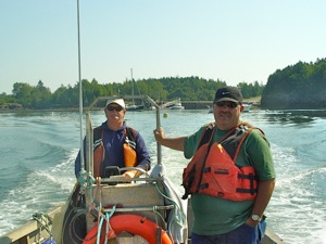 David Morang, the manager of the Cooke Aquaculture salmon operations in the Eastport and Lubec area, has been involved with the fishing industry for thirty years. When Guilford Industries closed in Eastport in 1985, he worked at the mill in Baileyville for six years. He was happy to return to the water when Heritage Salmon began their operation. When Cooke Aquaculture purchased Heritage Salmon, he became the manager of the salmon operations at Deep Cove and Broad Cove in the Eastport area and at South Bay in Lubec. There are also other Maine lease sites in Starboard in Machiasport and in the Mount Desert Area that are managed by Cooke Aquaculture.