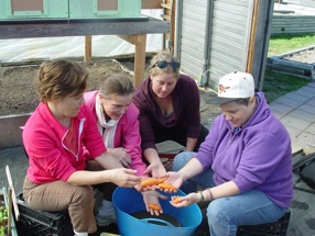 visiting local farms. Art projects are enjoyed. During the 2012 program, the farmers helped to create a cookbook and they learned about all aspects of gardening such as worm composting.