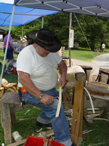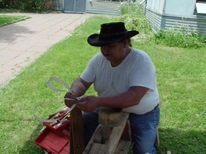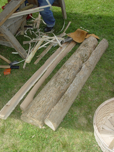 Eldon has built up quite a business harvesting brown ash logs and pounding them into ash splints. He cuts about 250 six-foot ash logs each year. Each day he tries to split one log. Depending on the log and the growth rings, he can usually average twenty-five rolls of splint from a log. He explained that the Natives prefer to work with the white wood splints. He also sells brown ash splints to basketmakers.
