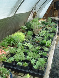 Succulent plant dishes with plants that are grown by Patty Pagano, Ernie’s partner, are also available for sale at Entwood Bonsai. She helps out at the farm and at the Common Ground Fair and other events, along with friends, Arthur, and his mother.