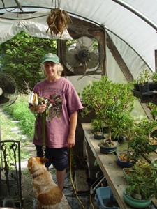 Entwood Bonsai’s Farm in Burnham this past fall, Ernie and his friend, Arthur, were fixing the roof of their house. Patty was helping out with the watering, and the cats were frolicking on the benches in the greenhouse. Hundreds of bonsai plants were located in the greenhouses and throughout the property. When one takes