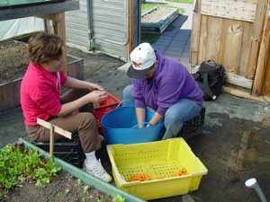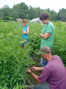 Seth Kroeck from Crystal Spring Farm in Brunswick offers advice to the Bowdoin College organic gardeners.