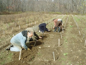 Will Bonsall (left front) grows hundreds of varieties of heirloom seed potatoes at his