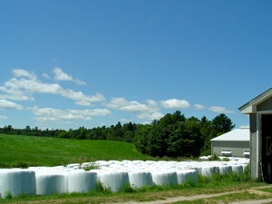 which is set back from busy Route 302 in Windham. There are several buildings on the farm property including the new airy heifer barn which was just constructed two years ago. The Halls are fans of Kuhn farm equipment that was originally manufactured in France. They have several Kuhn farm machines (fertilizer spreader, mower conditioner, rake, tedder, and bale wrapper) that they have purchased over the years.