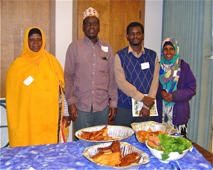 Slow Money Maine gathering in Gardiner on April 12, 2017. Seynab Ali, Mohamed Abukar, and Batula Ismail came to Lewiston, Maine, in the mid-2000’s as refugees from Somalia. With the assistance of Cultivating Community they began farming in Lisbon, Maine, at the Packard-Littlefield Farm. Hussein Muktar, the Outreach Coordinator for Cultivating Community, served as an interpreter at the Slow Money Maine gathering. Jabril Abdi, one of the four farmers involved in the New Roots Cooperative Farm, was not in attendance at the April 12 get-together.