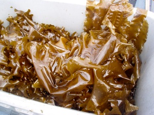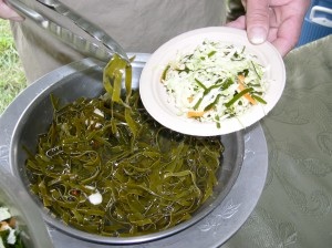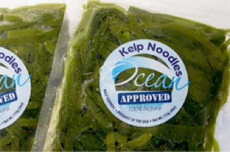 Kelp is used in soups, salads, desserts, main dishes, and wraps. It goes well with sushi, tofu, vegetable stews, and stir-fries. On their website (www.oceanapproved.com) Ocean Approved shares recipes for Mussels over Kelp Noodles, Vegetarian Kelp Noodle Soup, Piccalilli/Kelpalilly, Wakame and Shrimp Scrambled Eggs, Artichoke Stuffed with Crab and Kelp, Baby Sugar Kelp Wraps, Dilly Kelp Pickles, and Local Maine Kelp, Salmon, and Tomato Salad. Several kelp enthusiasts have shared their creative kelp recipes and photos on the Ocean Approved’s Facebook page.