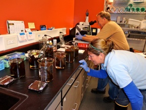 Tolleff and Paul keep busy monitoring various components of the sea farms. They evaluate nutrient shading issues, nitrogen and temperature levels in the water column, and take measurements and weights of the kelp to determine growth rate. They strive to be environmentally conscious. Some wild harvesting of seaweed still takes place, but their goal is to phase that out.