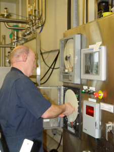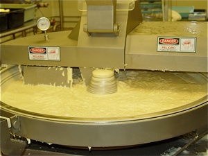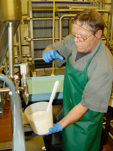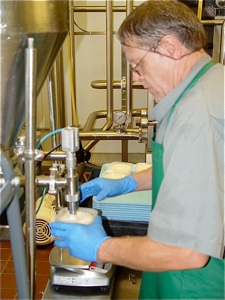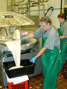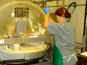Mark is shown collecting the cheese spread from the new bowl cutter.