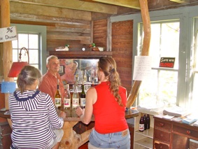 The building where the tasting room is located was constructed by Tom from elm timbers from the historic elm trees in the area that he had to cut down due to the Dutch Elm disease. It was built in 1984, but its weathered look makes it appear to be a much older structure. The second floor with the many windows was the area where Gail kept her looms for her weaving.