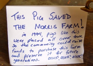 When the Morris Farm went up for sale in 1994, many area residents could not bear the thought of the farm becoming a victim of development. For many residents, there were memories of working on Forrest’s farm in their younger days and also recollections of the cart and buggy rides that he provided for area children. Fifty acres of Forrest’s farm were concentrated in pasture and farmland and ten acres were composed of woodlands. The land was considered just too important to be divided and developed. People rallied behind the idea of organizing a farm trust to preserve Forrest’s land. The dream of saving the land came to fruition in June of 1995, when the Morris Farm Trust was able to purchase the farm.