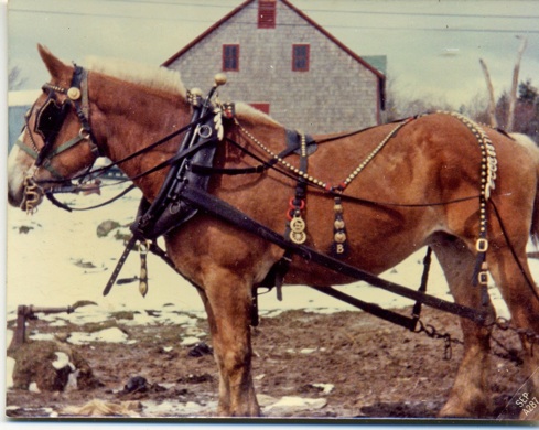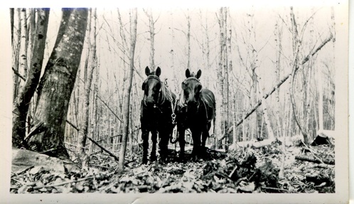 Roy Bessey relied on his draft horses, Tom and Jack, to help with the harvesting of wood, plowing, haying, and harvesting of crops. (photo courtesy of Dr. Shirley Bessey)