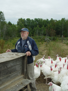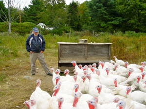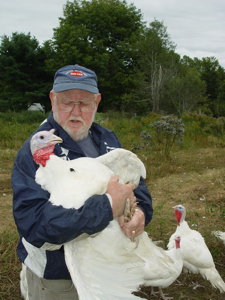 May through October, and the Brunswick Winter Farmers’ Market at Fort Andross from November through April. On Thursday afternoons he sells his turkey products at the South Portland Farmers’ Market in the summer. Bob participated in the Maine Harvest Festival in Bangor this past November and led a talk on small poultry production.
