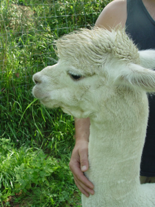 attempted shearing the alpacas but feel that a professional shearer has proven less stressful to their animals. They also have had to rely on the veterinarian assistance of Dr. William Newcomb