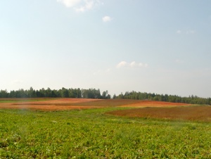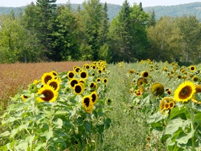 buckwheat field before it is ready to be harvested, it is truly an impressive sight of a mix of bright red, yellow, orange, and green colors. The Bouchards use all parts of the buckwheat. The hulls of the plant are used for bedding for the cattle, and the combination of the hulls and the manure created by the cattle are reintroduced into their fields to help fertilize the soil.