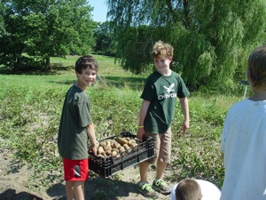 When the visit took place for the Chewonki profile that appears on this website, there were summer camp boys who were helping to harvest the potatoes, pick beans, weed, and learn all about wool and the natural dyeing process with various flowers.