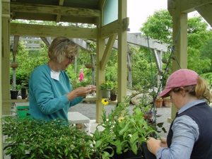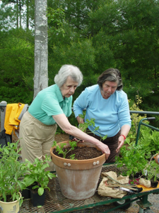 Sue Woolson, a horticultural therapist from Tuscon, Arizona, (on left) has been volunteering for three years in the Therapeutic Horticulture program.