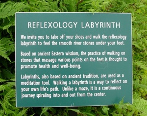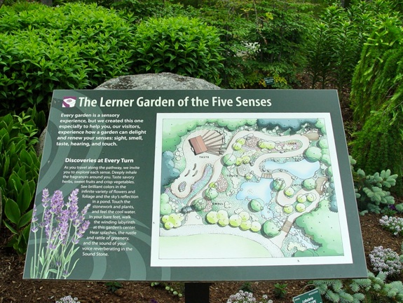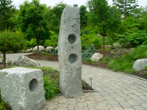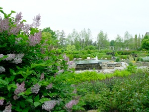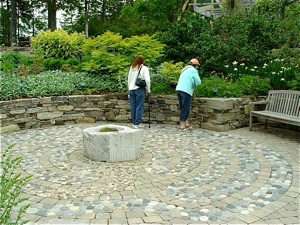 Entrance into the garden is on a cobblestone path that leads under the beautiful weeping larches.