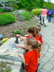 Youngsters enjoy the stone sink.
