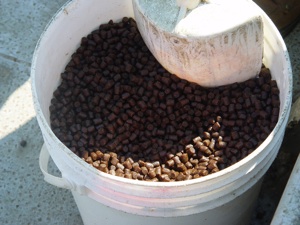 Amidst the fifteen pens situated in the Deep Cove facility is the feeding barge. On the day that Unique Maine Farms visited, there were approximately 450,000 salmon that were swimming in the Deep Cove pens. Brian Jones was monitoring the feeding station located on the barge. Brian and two other employees share twelve-hour shifts to assure that the fish are always monitored and fed. Underwater cameras allow the feed barge employee to see when sufficient food has been consumed by the fish.