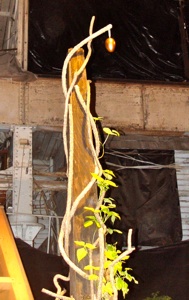 The modern-day Jack of the Jack and the Beanstalk fairy tale illustrated by the Marstallers at the Portland Flower Show was an individual who was very enthused about renewable green energy. His golden egg could be interpreted in energy savings. According to Jeff, the Marstallers’ display had a new slant on the beloved fairy tale. Jack at the Marstaller’s display obtained self-sufficiency by growing all of his vegetables and herbs both inside and outside of his zero emission greenhouse. Two geese were kept in his quaint house and a solar collector was set up outside the greenhouse. Jeff and Marianne’s artistic display created a striking resemblance to the energy savings work with which they have been involved at their greenhouse operation in North Yarmouth.