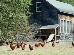When one visits Easter Orchard Farm, the quality of the farm operation is immediately apparent. The several gardens all appear vibrant, in order, and thoughtfully arranged. There are fruit trees, flower gardens, and an attractive landscape design. Mort raises about sixty Rhode Island Reds in a deluxe chicken house that rivals any other with its large windows and airy feel.