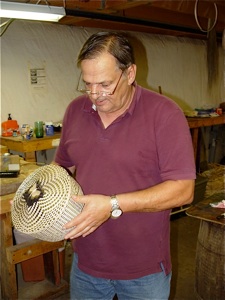 Fred made some of his first baskets in the late 1960‘s. When Fred was drafted in the early 1970‘s, he joined the Marines and served in the Mojave Desert in California. Upon his return from service in 1976, Fred became earnestly interested in honing his skills and making baskets. He has taken basket making to new levels.