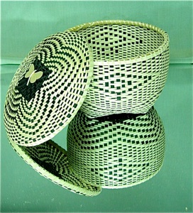 Fred Tomah’s bond with the elements in nature reaches beyond his work with the butterfly baskets. He intentionally weaves elements of his tribal culture, that he regards as significant, into all of his baskets. He has created Katahdin Smoke Signal baskets and Katahdin eagle baskets.