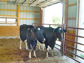 In 1960, Charles built a new barn on his property. This barn serves as the dairy barn for Mineral Spring Farm. He added land to the farm to include almost two hundred acres and he and Carol and his son, Chuck, usually milk around fifty registered Holsteins and raise an additional fifty young cows each year.