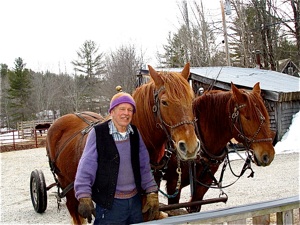 They raise sheep and work with the draft horses in the woods and fields. Peter volunteered to help found MOFGA’s Low Impact Forestry group. Marty and Peter tend large gardens, preserve their food, and make maple syrup. Over the years they have volunteered with Scouts, and school and community activities. Peter helps out at the Common Ground Fair every year. Marty, a potter, artist, and an accomplished fiber artisan has volunteered to run a Farm Art program for young girls in the summer. She also serves on the Conservation Commission in Porter.