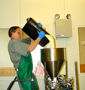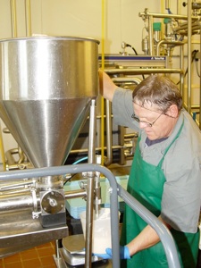 Mark is shown collecting the cheese spread from the new bowl cutter.