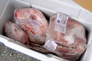 A large assortment of cuts of lamb are offered by Rainbow Farm. Noah sells ground lamb, kabobs, chops, stew meat, ribs, large leg of lamb steaks, and one pound leg of lamb steaks. You can find his lamb at the Blue Hill Coop.