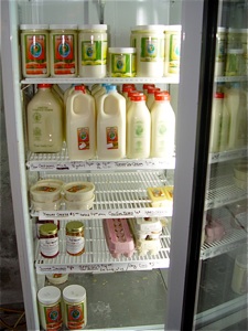 A variety of farm products (milk, yogurt, Ferment, vegetables, meats, and greens are available at the Farm Stand at the Smith Family Farm. The Farm Stand is open on Mondays and Fridays from 3 to 6 p.m. and on Saturdays from 9 a.m. to noon.