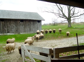A flock of sheep still can be viewed on the grounds of the Shaker Village in New Gloucester. Brother Arnold Hadd explained that many of the sheep that they presently care for were dropped off at the farm over the years because the animals were in need of a home.