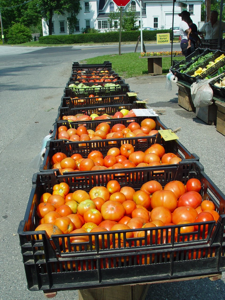 Snakeroot Organic Farm offers an impressive variety of fresh vegetables. In addition to the traditional vegetables that one would expect at a farmers’ market, they also grow some less common veggies such as sunchokes or Jerusalem Artichokes, rutabagas, parsnips, horseradish, gobo or Japanese burdock root, boc choi, daikon radish, garlic bulbils, and celeriac. Tomatoes are their specialty and they grow three thousand plants of thirty different types. Their specialty tomatoes are all heirloom varieties.