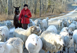 There was another animal that made the trek back home with John and Doreen and the sheep and that was their beloved Larry the llama. It appeared that he was aware that Gwen meant business, and after being rounded up, Larry followed along the route with everyone else, granted with a somewhat lower enthusiasm level! The Simmons acquired another llama by the name of Cookie in February 2013.