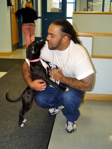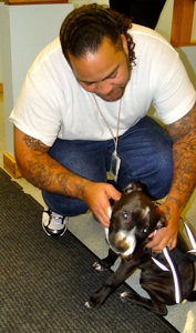 When dogs at the Humane Society have special needs or little likelihood to find a home because of their background or behavior they are often matched with inmates at the Bolduc Correctional Facility who have agreed to sign on as a dog trainer.