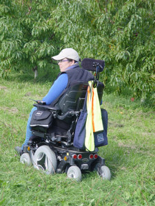 Thanks to the assistance of Maine AgrAbility, Naomi King has an all-terrain wheelchair that enables her to navigate throughout the farm.