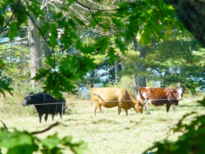 In regard to the farm operation at Wolfe’s Neck Center for Agriculture & the Environment beef cattle belonging to area farmers are pastured on the property. A variety of animals live at the farm. Free-range Bronze Broad Breasted turkeys are raised for Thanksgiving. North County Cheviot-Suffolk sheep graze in the fields and lamb is sold. All the animals are raised on pasture that is free from synthetic fertilizers and pesticides and their grain contains no hormones or antibiotics.